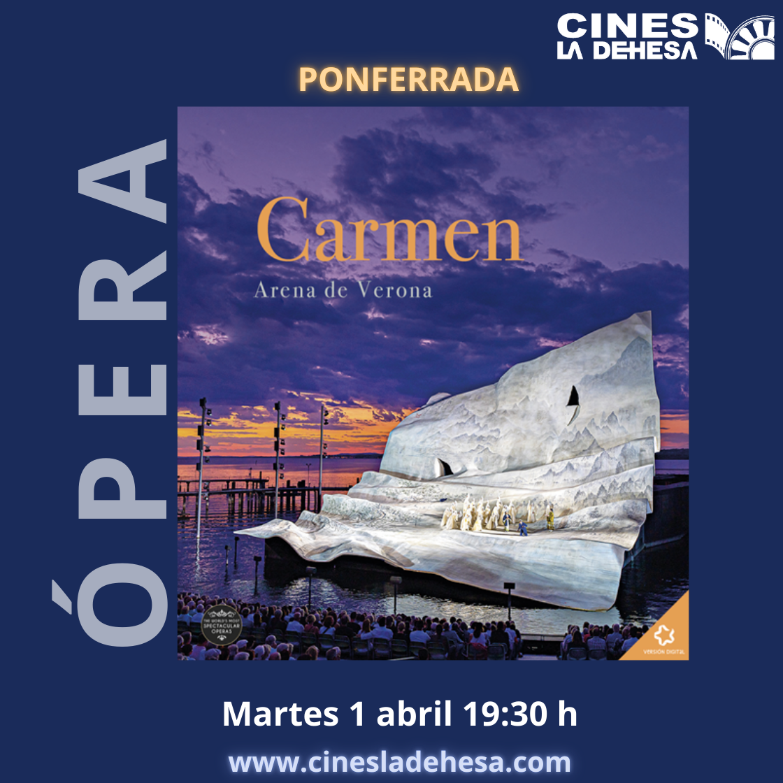Sumérgete en la magia de las grandes óperas y ballets como nunca antes. Te ofrecemos una experiencia única, donde las representaciones más impresionantes de los teatros más importantes del mundo llegan directamente a la gran pantalla. Disfruta de una vista panorámica, con una calidad de imagen y sonido excepcionales, que te permitirán vivir la emoción de cada nota, cada paso y cada gesto como si estuvieras en el mismo escenario. Desde las obras más clásicas hasta las más innovadoras, esta es una oportunidad para adentrarse en el arte escénico en su máxima expresión, sin salir de tu butaca. ¡Vívelo como nunca antes!